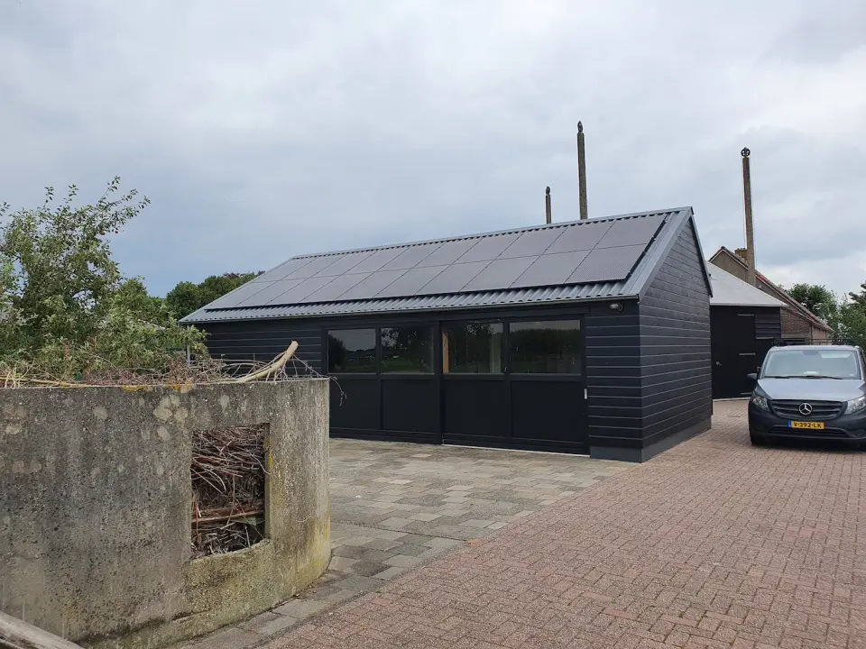 Schuur met golfplatendak